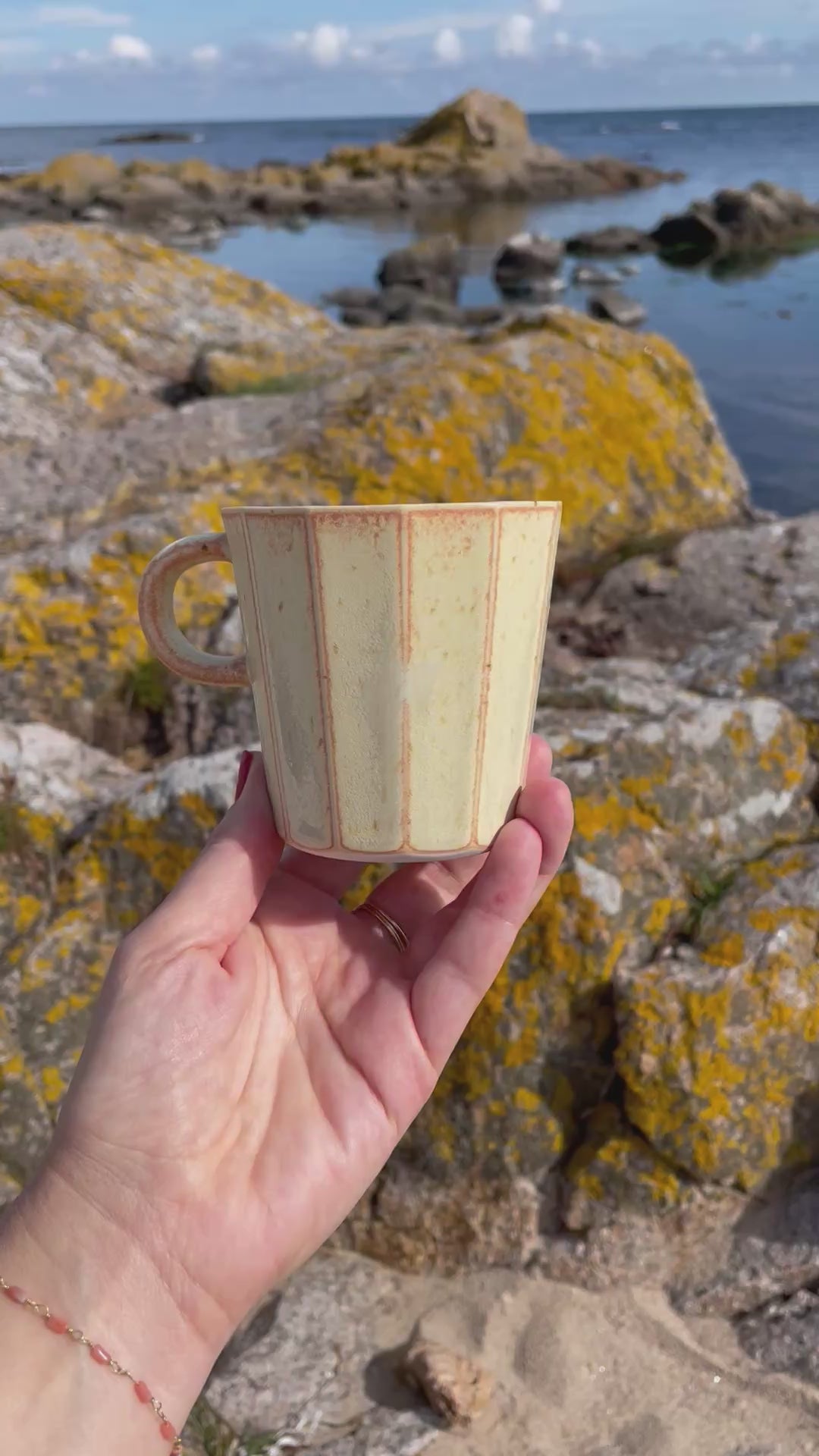 Let og elegant kop med hank og facetter fra den bornholmske keramiker Anette Leegaard Fuhlendorff.