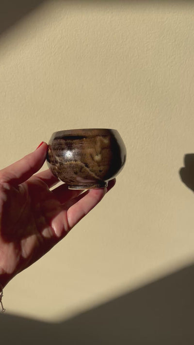 Keramik kop i en smuk dyb mørkebrun farve - håndlavet af keramiker Tinne Maria Andersen.