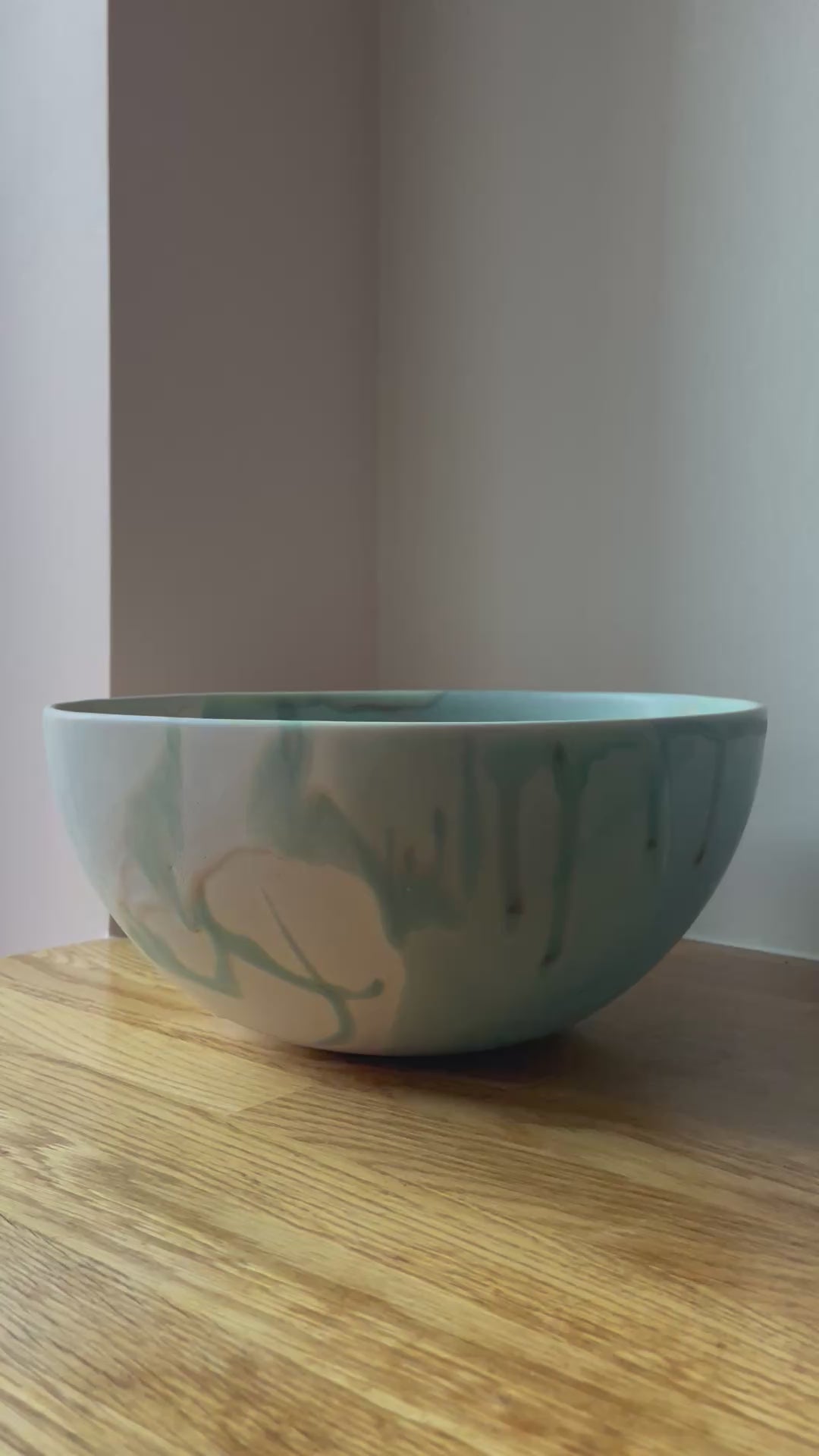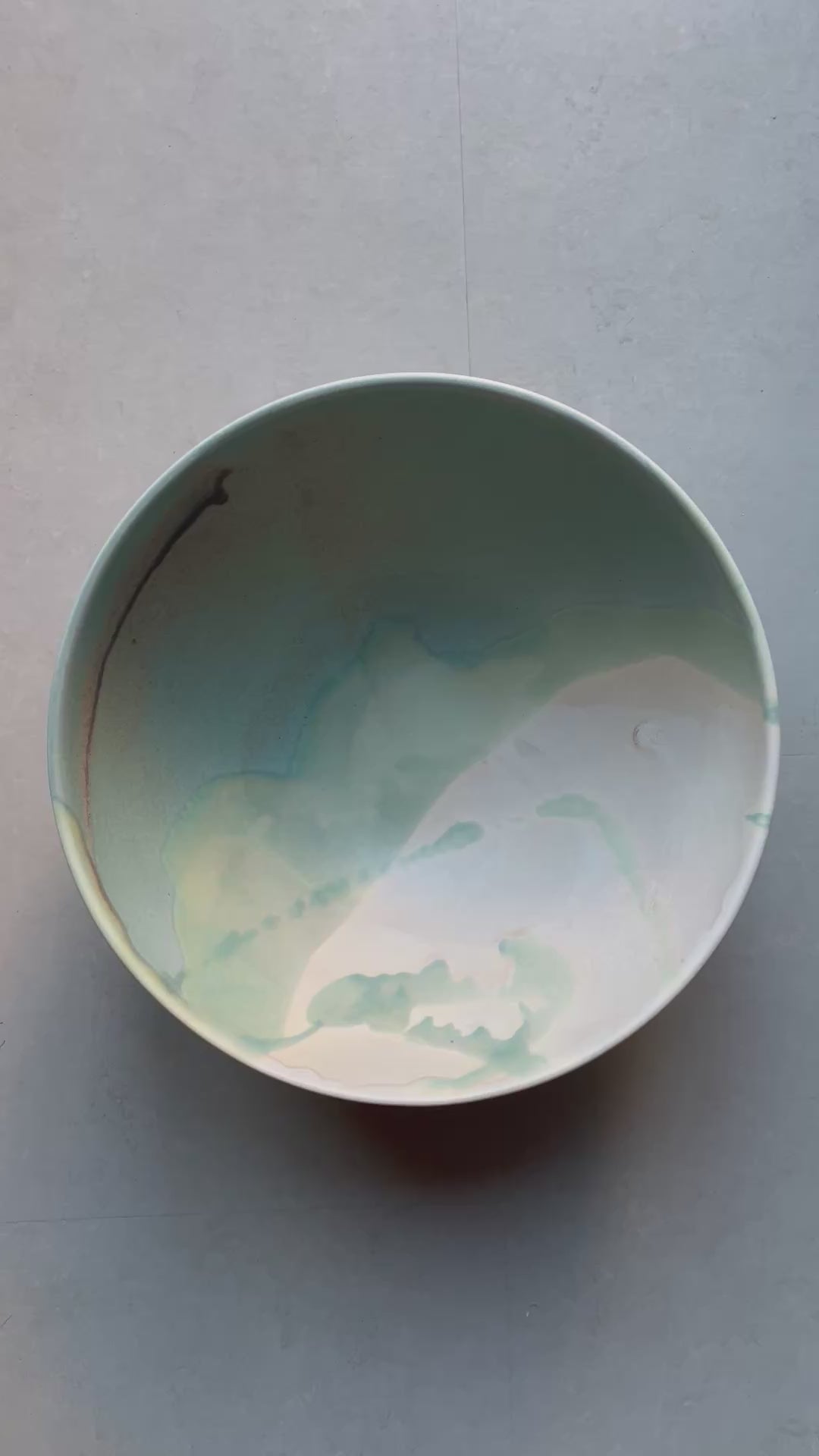 Keramik skålen er fra Vandkant-serien, og den unikke glasur er netop inspireret af vandkanten, både i bevægelserne og i farverne. Skålen er en one-of-a-kind.