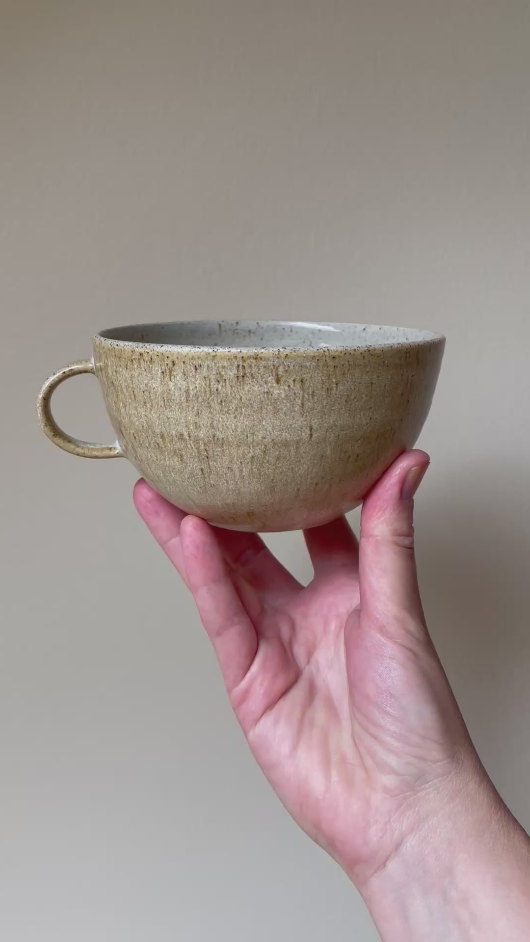 Smukke hånddrejede kopper med hank til te, cappuccino, varm kakao mm. Koppen er håndlavet i Frederiksværk af keramiker Anna Bystrup.