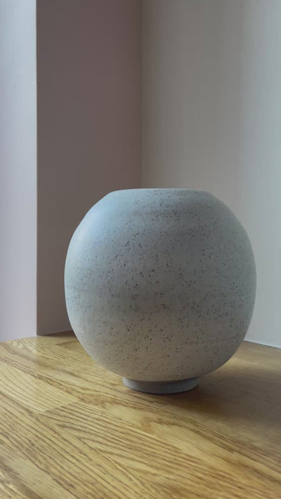 Smuk håndlavet unika vase i stentøjsler fra danske TYBO i en lys grå farve.