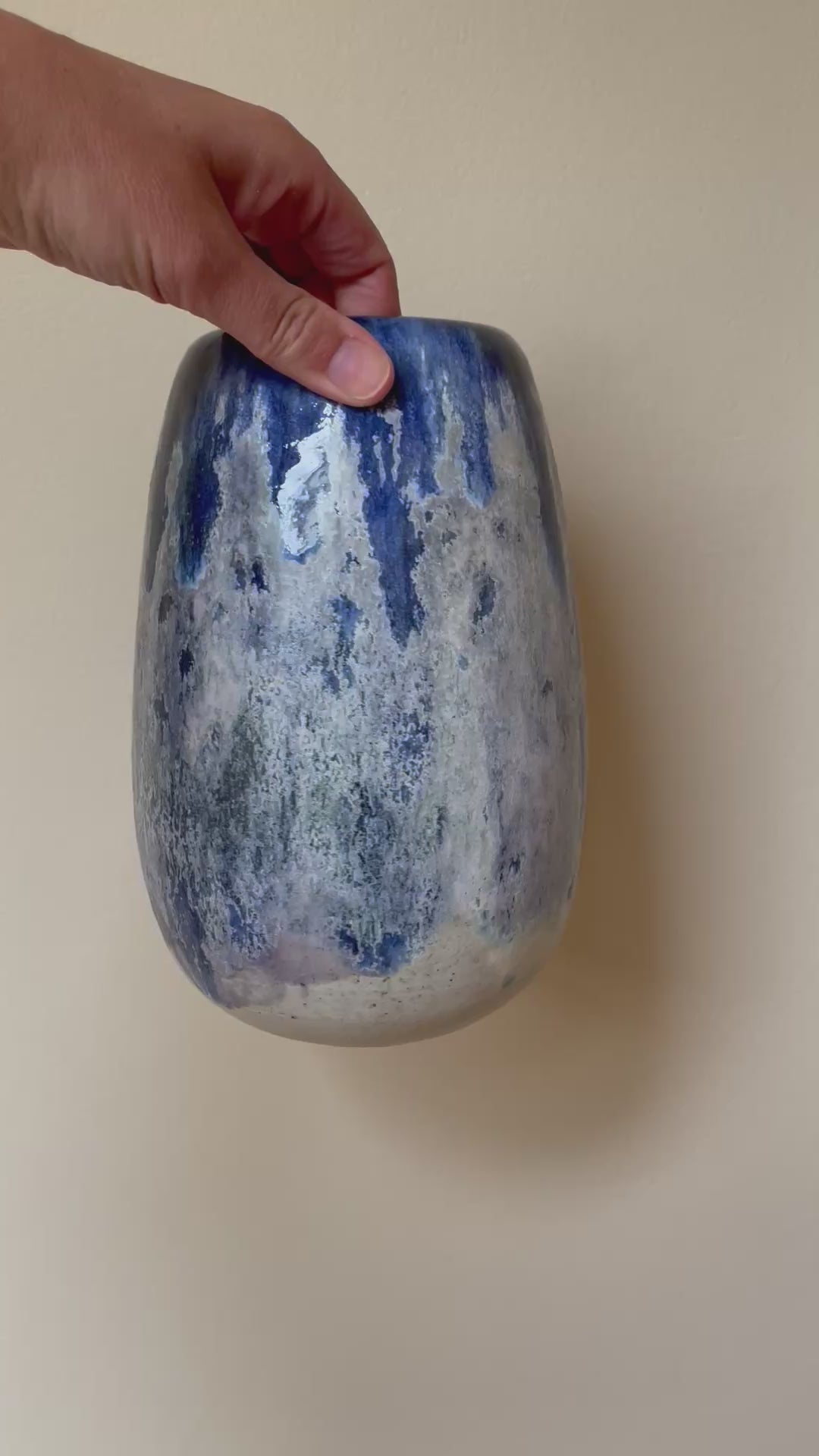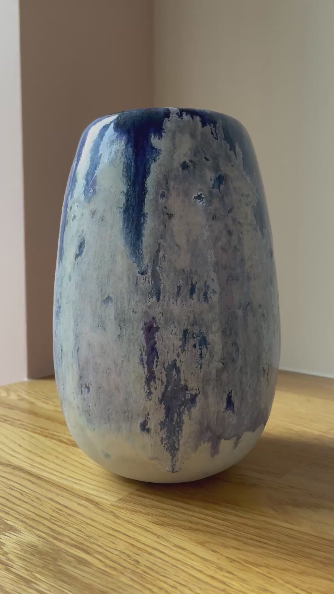 Unika vase med glasur i blå og hvide nuancer - håndlavet af keramiker Aage Würtz.