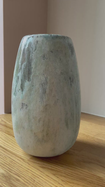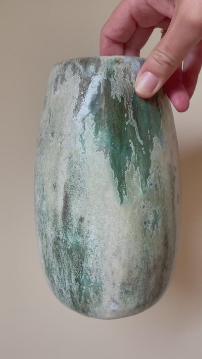 Unika vase med glasur i grønne og lyse nuancer - håndlavet af keramiker Aage Würtz.