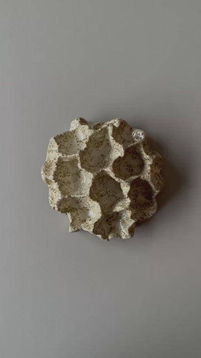 Den smukke, skulpturelle koral til væggen fra Clay By Bond har et organisk udtryk med bølgende former og dybe kløfter. Væg korallen er glaseret med en beige/brun glasur, der skaber masser af liv og dybde på overfladen.