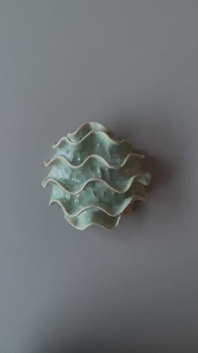 Den smukke, skulpturelle koral til væggen fra Clay By Bond har et organisk udtryk med bølgende former og dybe riller. Væg korallen er glaseret med blank grøn glasur, der skaber masser af liv og dybde på overfladen.