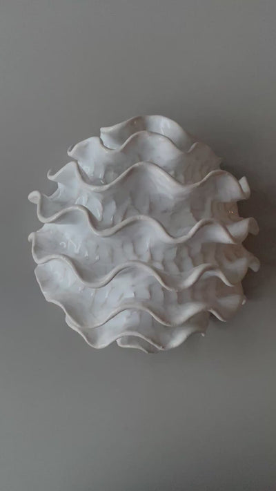 Den smukke, skulpturelle koral til væggen fra Clay By Bond har et organisk udtryk med bølgende former og dybe riller. Væg korallen er glaseret med en blank, hvid glasur, der skaber masser af liv, dybde og tekstur på overfladen.